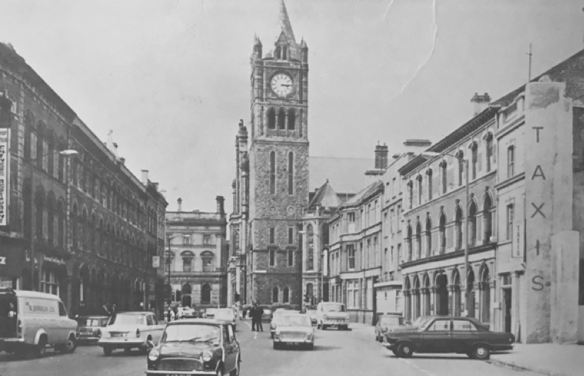 J&T offices at 12 Foyle Street, Derry. To left of Taxis signage (1960s)
